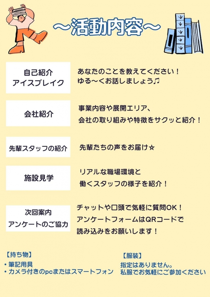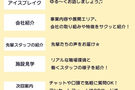 ➡ 会社紹介(事業内容・エリア、取り組みなど)と施設見学をまるっと50分で完結する内容となっています(`・ω・´)