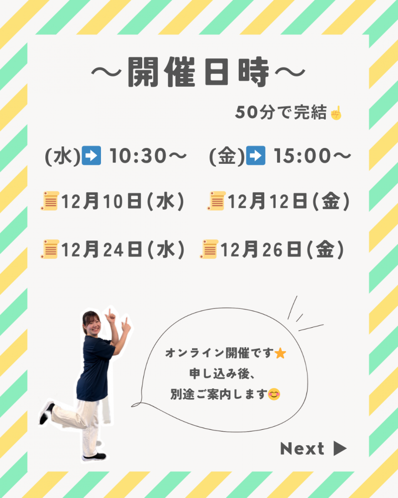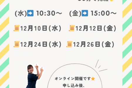 11月は終了となりましたので、12月のスケジュールを公開しますよ~★