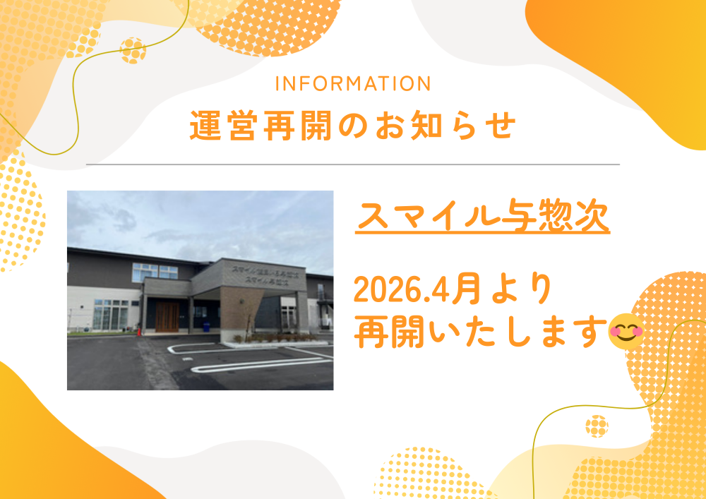 2026年4月、焼津市与惣次にあります、「スマイル与惣次」の運営再開することが決まりました~☆