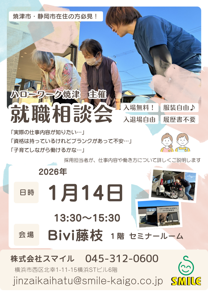 ハローワーク焼津主催の就職相談会にスマイルが参加します!!
