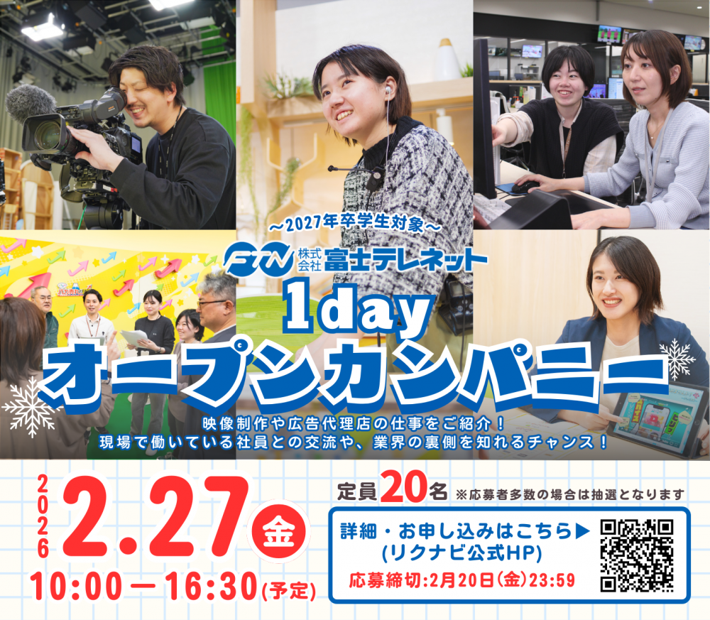 参加希望の方は「リクナビ」応募ページからエントリーをお願いします。
